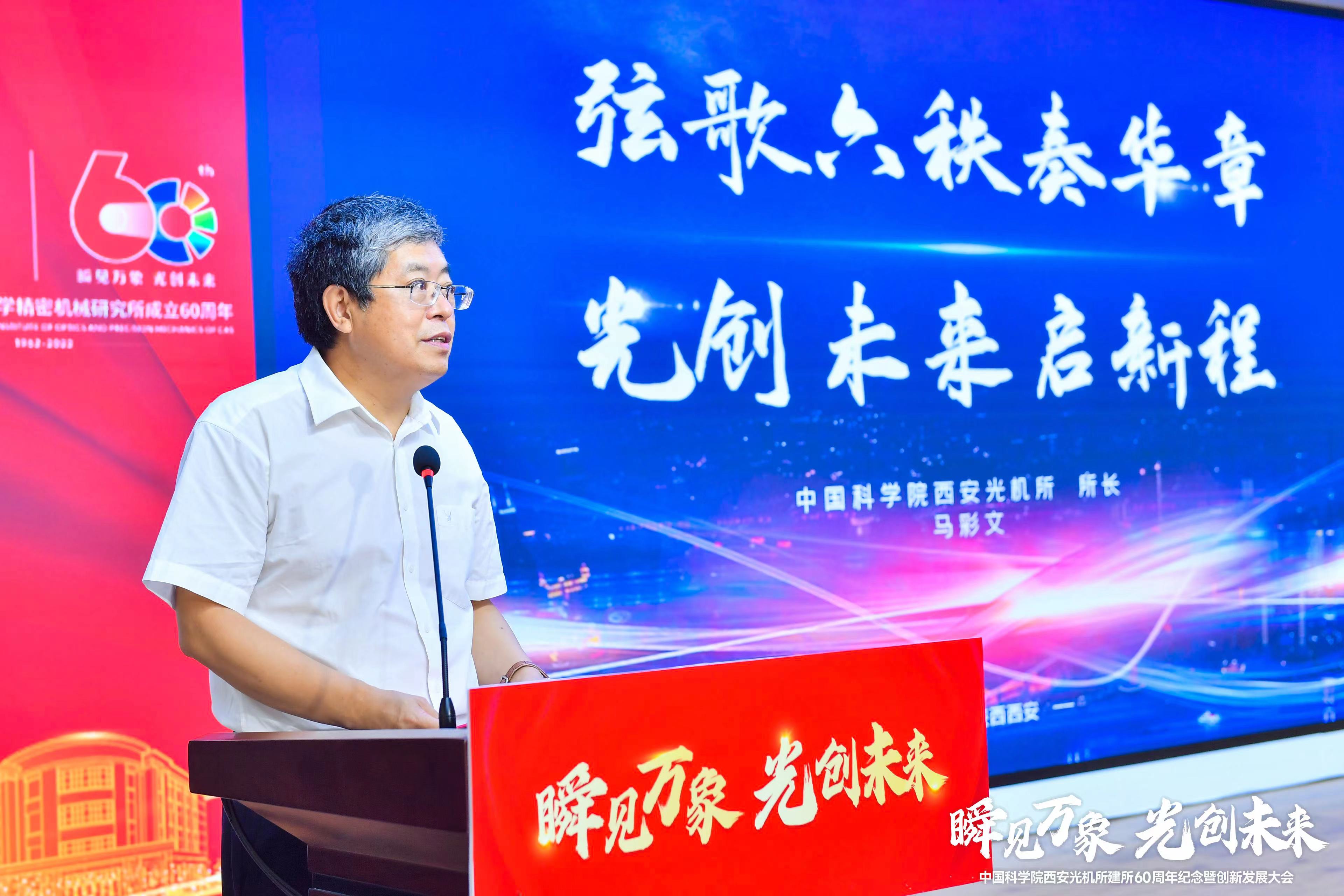 西安光機所所長馬彩文作“弦歌六秩奏華章 光創(chuàng)未來啟新程”的大會主題報告。報告從“艱苦創(chuàng)業(yè)、改革發(fā)展、創(chuàng)新跨越”三個階段回顧了三代西光人潛心致研,追光逐夢的奮斗歷程,系統(tǒng)總結了西安光機所建所60年來立足國家重大需求、面向世界科技前沿,推動基礎研究和關鍵核心技術攻關等方面取得的代表性成果,介紹了研究所在學科拓展、人才培養(yǎng)、科技成果轉移轉化和服務地方經濟發(fā)展方面的舉措和成績,闡釋了西光所“因核而生、為國而戰(zhàn)”的紅色基因,凝練梳理了西光人“自覺聽黨話、堅定跟黨走”“以祖國的需要為我們的方向”的精神本色。他特別講到,回顧崢嶸歲月、輝煌成就,深切感受老一輩西光人艱苦奮斗、科技報國的執(zhí)著與堅守,再次重溫習近平總書記來所視察時的殷殷囑托,就是為了進一步激發(fā)新一代西光人作為“國家隊”、“國家人”,心系“國家事”、肩扛“國家責”的思想自覺和行動自覺,弘揚西光精神和優(yōu)良傳統(tǒng),堅決肩負起時代和歷史賦予的重任,更好的履行國家戰(zhàn)略科技力量主力軍的使命擔當,向高水平科技自立自強的新征程奮力邁進。